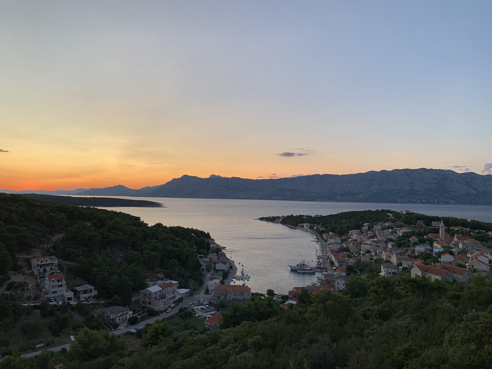 When you're driving up in the mountain and start approaching Povlja, you have the most amazing views. We stopped at a viewpoint alongside the road and stood there for a while, looking at the sunset, with the village, the ocean and the mountains in the background.